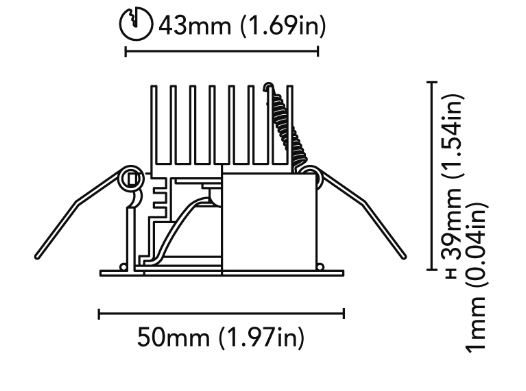Faretto fisso da incasso a soffitto, con cornice tonda 50mm.