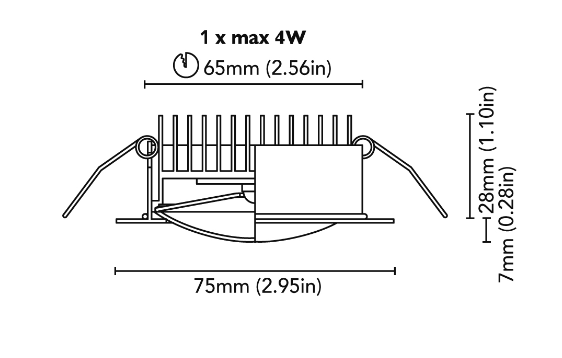 Fixed ceiling downlight, with round frame 75mm.